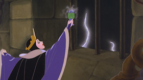 Contudo, Walt Disney não parou aí. Não. Ele originou, dentro deste filme, duas das personagens mais coloridas, deliciosamente teatrais e exageradamente histriónicas que existem no universo Disney. Estou a falar, claro, da Rainha Má e do Zangado, como já tinha referido acima. Duas grandes divas, dois grandes egos, com um genial e crítico sentido de humor.